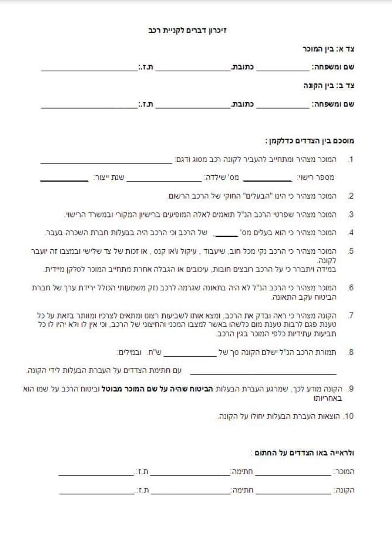 *הזכרון דברים משמש גם כזיכרון דברים לקניית רכב